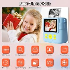 Click for More Images Unique Design & Style: This instant camera masterfully blends vintage charm with modern innovation, Its leather-textured finish carries a sense of story, sleek lines that define its elegant aesthetic. It’s the perfect...