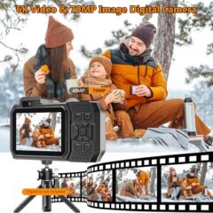 Click for More Images 4K Camera Action & Underwater Adventures:Capture cinematic 4K60FPS videos and 64MP photos with this waterproof camera,perfect for fast-paced action sports like motorcycle riding,biking,and skydiving.The IP68 underwater...