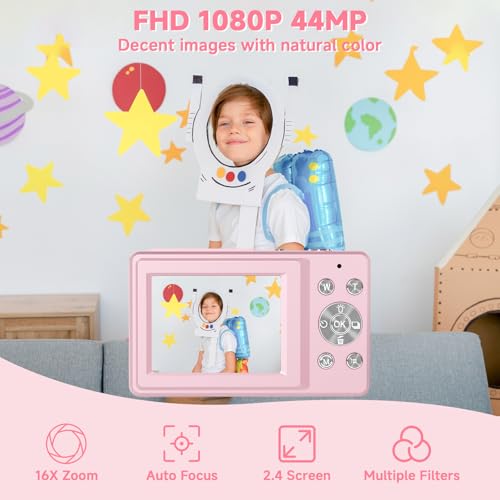 Click for More Images ?FHD 1080P & 44MP ?: This digital camera for teens advanced CMOS technology ensures precise detail, capture vivid moments for preserving your memorable experiences. No difficult setup, Perfect for developing your kid's...