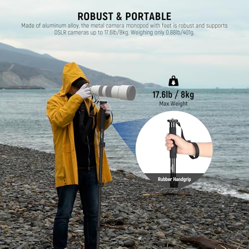 Click for More Images ?Robust & Portable? Made of aluminum alloy, NEEWER TP41 metal camera monopod with feet is robust and supports DSLR cameras up to 17.6lb/8kg. Weighing only 0.88lb/401g and folding down to a compact 17.3"/44cm, the mono pod...