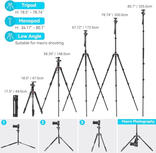 Click for More Images Wide Compatibility: This camera tripod is universally compatible with cameras and devices with 1/4"-20 and 3/8"-16 threaded holes, such as DSLR cameras, action cameras and mirrorless cameras, etc. It can also be used with...