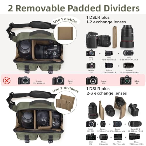 Click for More Images PERFECT BAG DIMENSION: The external Size of our camera shoulder messenger bag is 11 × 9 × 5 inches (Length × Height × Depth), with an adjustable shoulder strap designed to provide comfort and easy access to your...