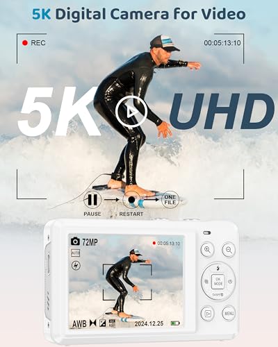 Click for More Images ?UHD 5K 72MP Digital Camera - Capture stunning 5K ultra HD video and 72MP professional photos with this digital camera. The upgraded CMOS sensor ensures every detail is sharp, turning each moment into a vivid memory. With...