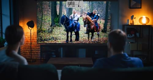 Click for More Images Remarkable Lifelike Vision: 400 ISO lumens movie projector Integrated D65 color temperature standard adopted by Hollywood and a 90% DCI-P3 color gamut, restoring all colors in brilliant, lifelike detail.Intelligent Screen...
