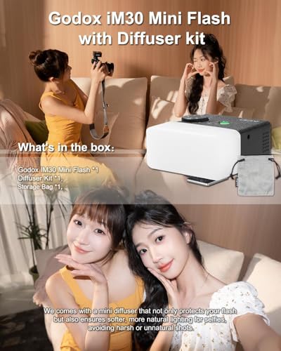 Godox im30 with Diffuser Kit – Reduce harsh shadows, create creative effects, and protect the flash head from dust and scratches, extending the lifespan of your flash unit.