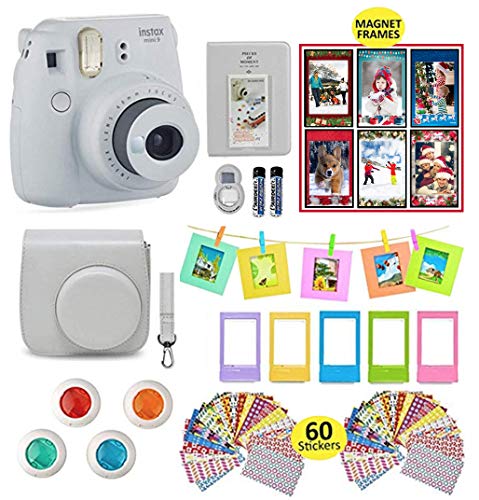 Fujifilm Instax Mini 9 Instant Camera with Accessories | Bundle of Soft Leather Case + Mini Photo Album + 6 Christmas Magnet Frames + 4 Colored Lenses + Selfie Lens + 10 Photo Frames + Stickers + More