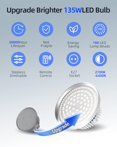 Brighter Than Ever: Boasting a 40% brightness boost compared to the previous bulb, it floods your scene with vivid, evenly distributed light, brightness 1-100% adjustable by remote control, along with a 2700K-6400K wide color temperature range for bi color switching, perfect for capturing sharp details and rich colors in portraits, product shots, or still lifes