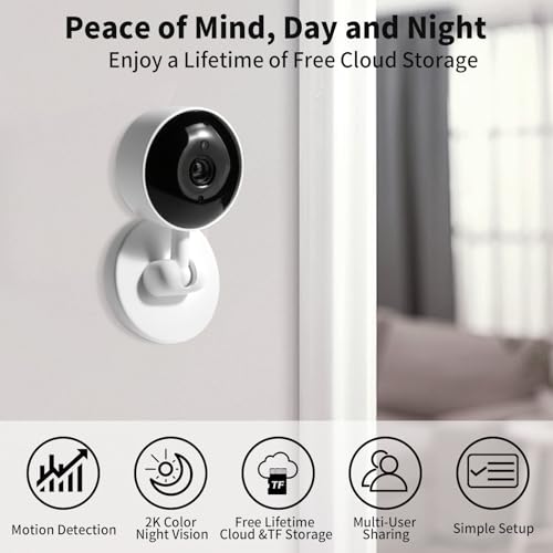 2K Cameras for Home Security with 24/7 Live Video, Image, Siren and Audio, WiFi Indoor Security Camera for House, Baby, Pet, Motion Detection, Color Night Vision, Free Cloud and SD Card Storage